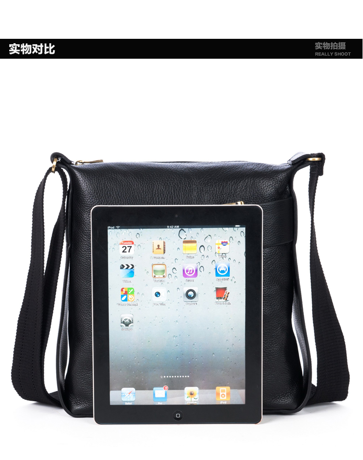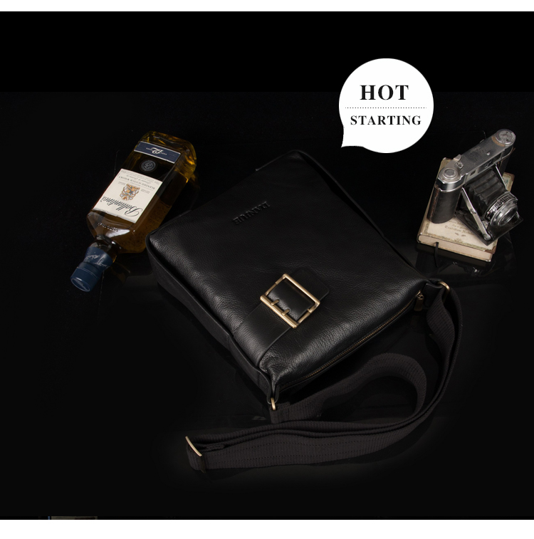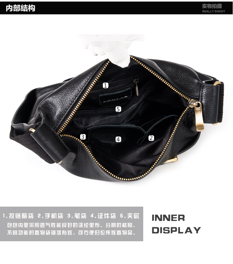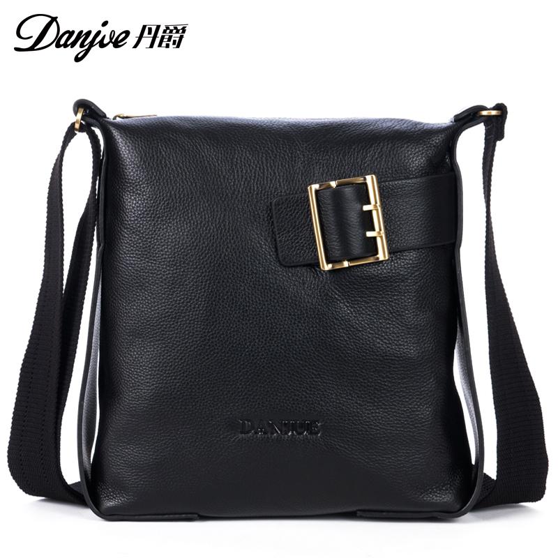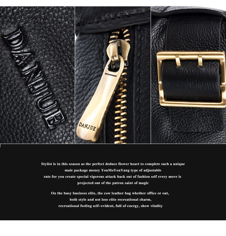 【DANJUE 丹爵 头层牛皮 男士单肩包 休闲斜挎包 商务公文包 真皮男士包 2016新款 D8160-2黑色均码】