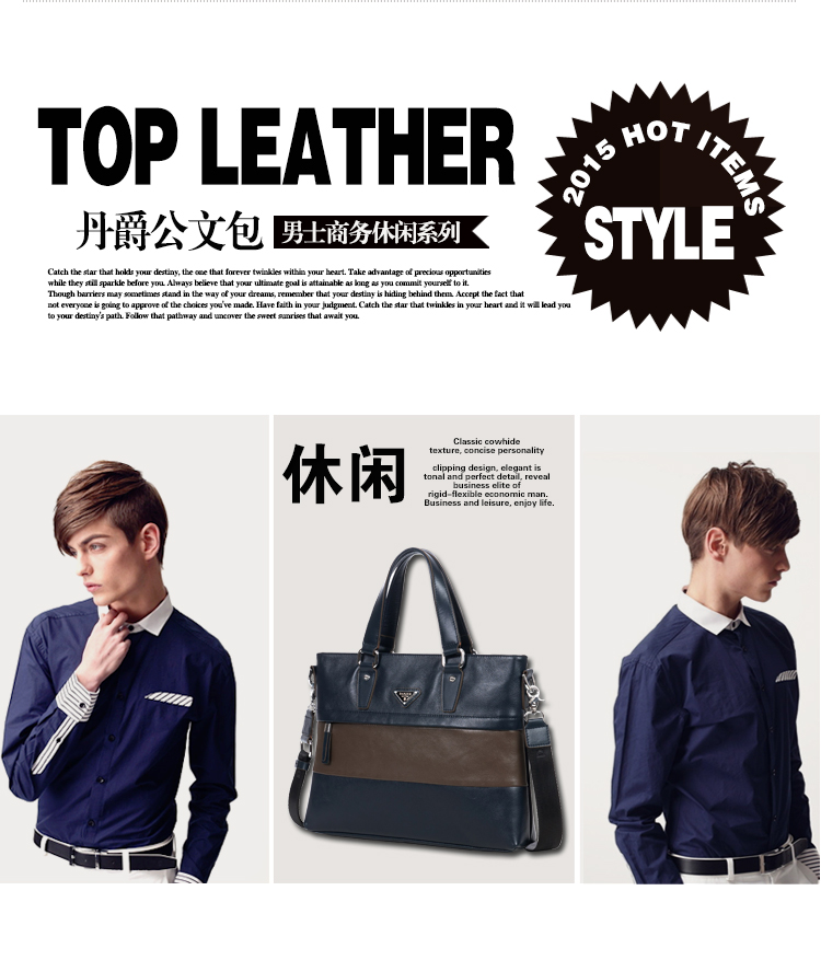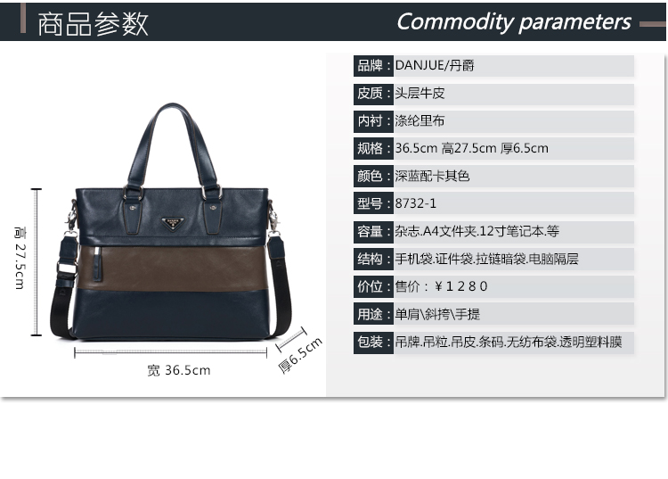 网站首页 【丹爵 DANJUE 头层牛皮商务手提包电脑包真皮男包时尚撞色2016新款公文包8732-1】 售价: ¥489+63美金币 已售: 4536 评价: 次评价 微信扫一扫轻松购买 数量: − + 收藏 保障: 随时退 过期退 极速退 真实评价