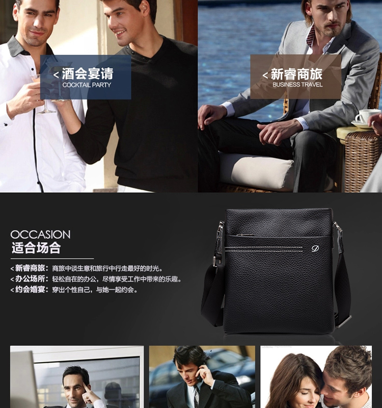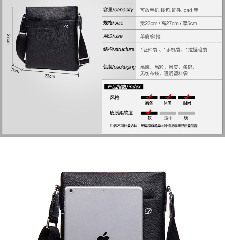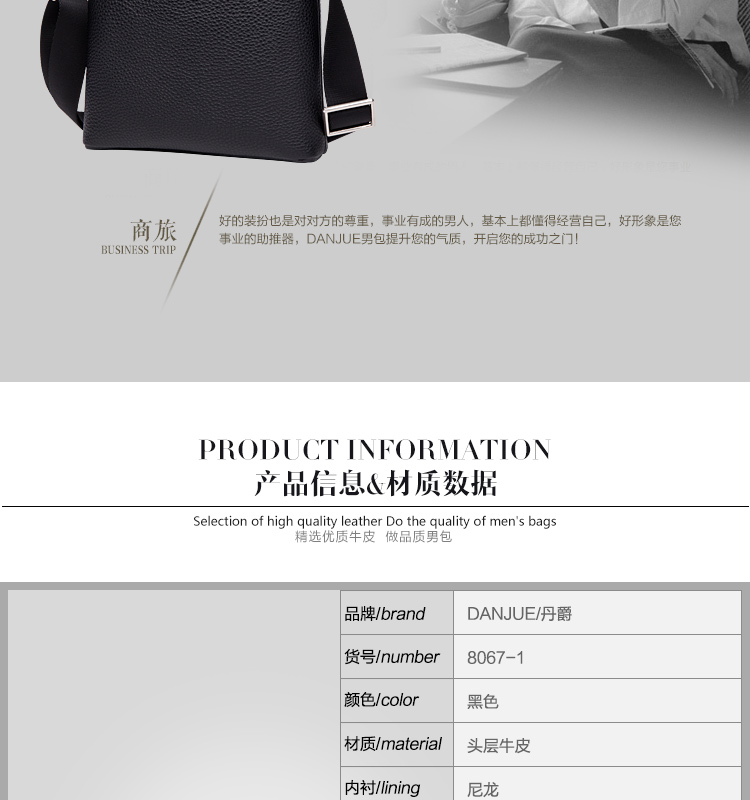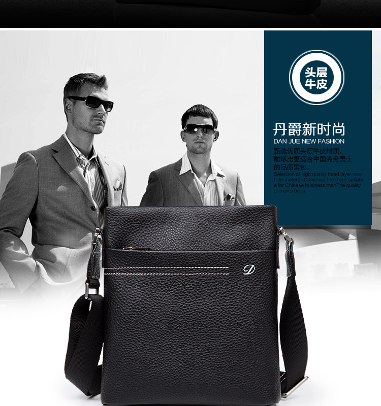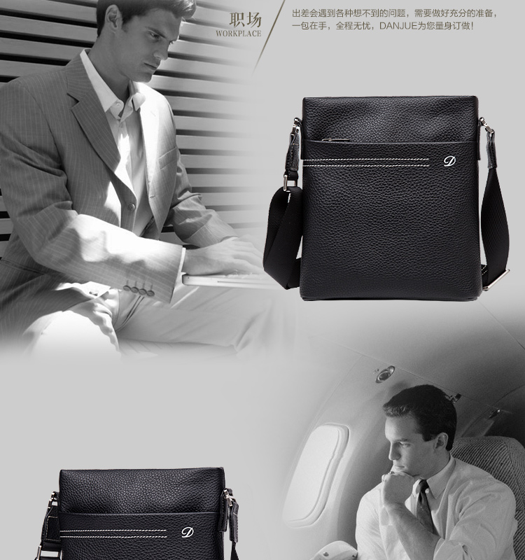 【DANJUE 丹爵 真皮男士单肩斜挎包简约时尚男包 8067-1黑色均码】
