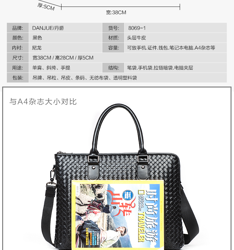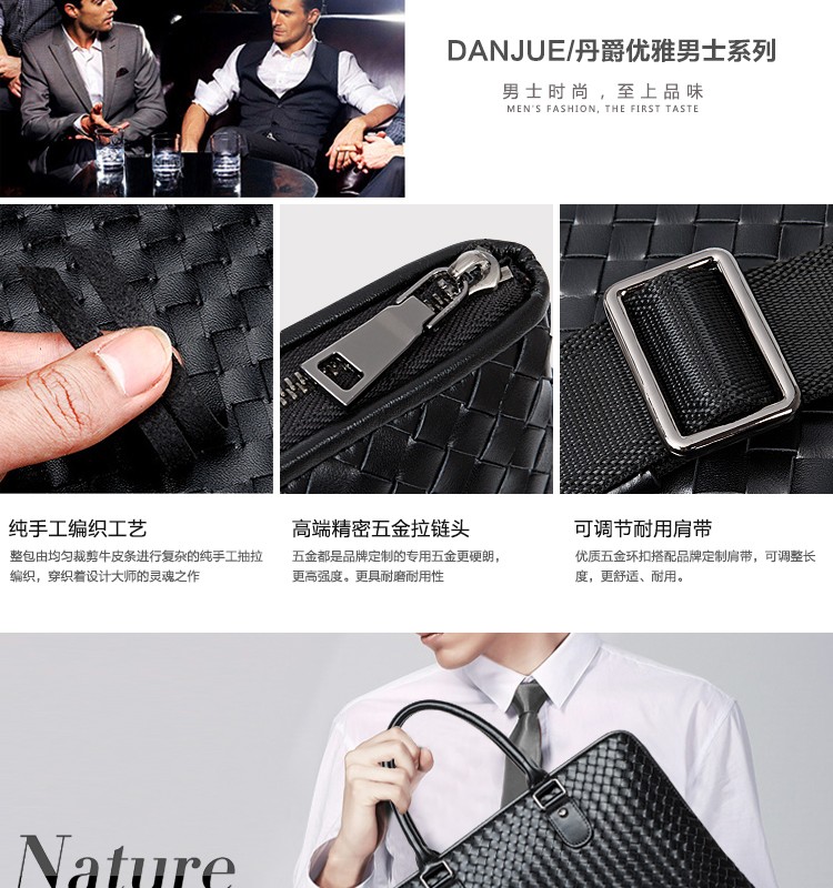 网站首页 【DANJUE 丹爵 新款手工编织男包真皮手提公文包真皮单肩斜挎包商务男包 8069-1黑色均码】 售价: ¥590+190美金币 已售: 4532 评价: 次评价 微信扫一扫轻松购买 数量: − + 收藏 保障: 随时退 过期退 极速退 真实评价