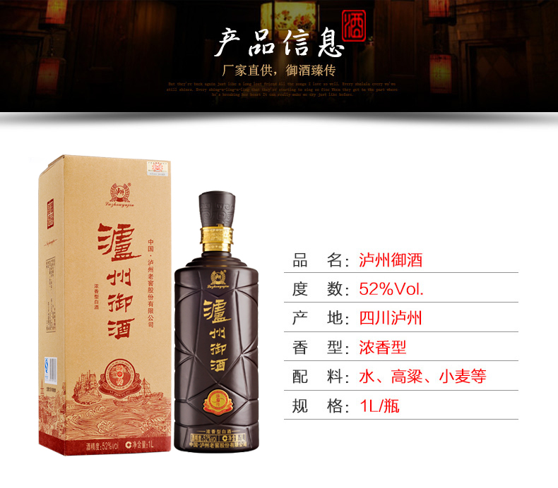 网站首页 【泸州老窖 御酒臻传1L装 52度 浓香型白酒】 售价: ¥99+20美金币 已售: 6756 评价: 次评价 微信扫一扫轻松购买 数量: − + 收藏 保障: 随时退 过期退 极速退 真实评价