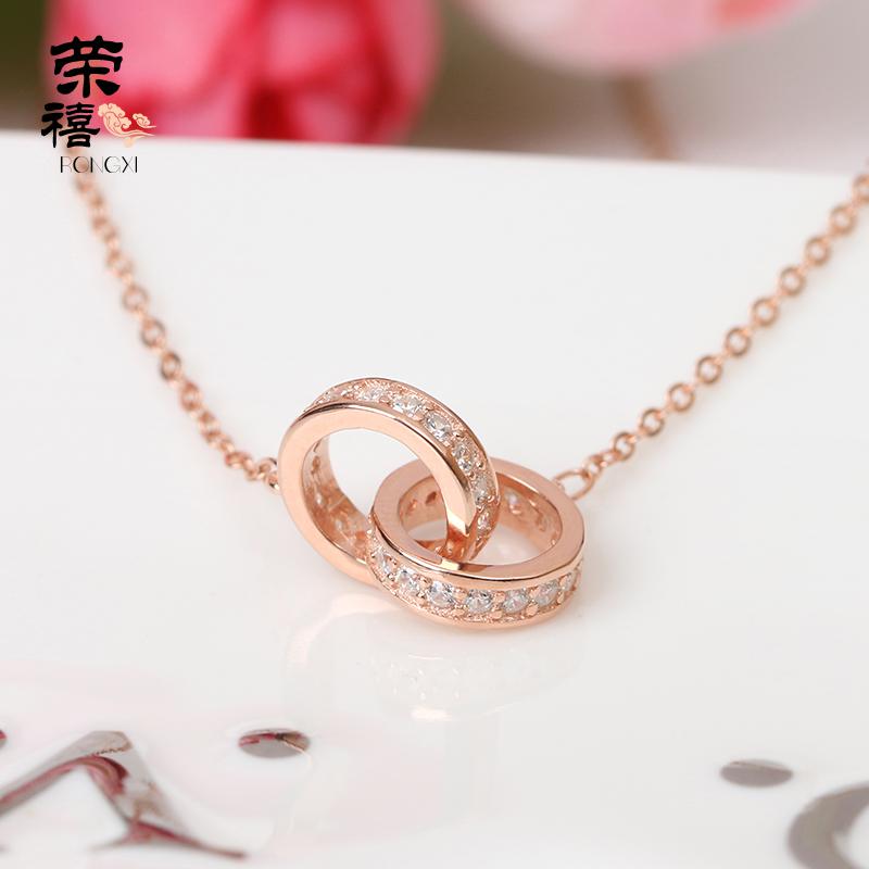 【荣禧 S925银项链女日韩版双环玫瑰金锁骨链简约饰品甜美生日礼物】
