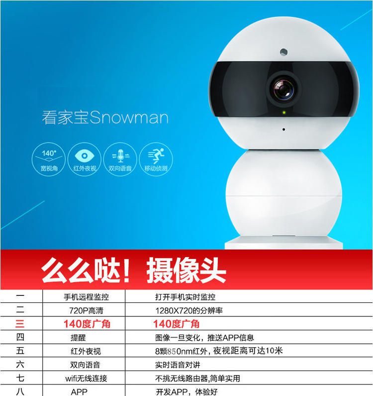 网站首页 【看家宝Snowman智能网络家用高清夜视无线手机监控 720P摄像头】 售价: ¥229+27美金币 已售: 5654 评价: 次评价 微信扫一扫轻松购买 数量: − + 收藏 保障: 随时退 过期退 极速退 真实评价