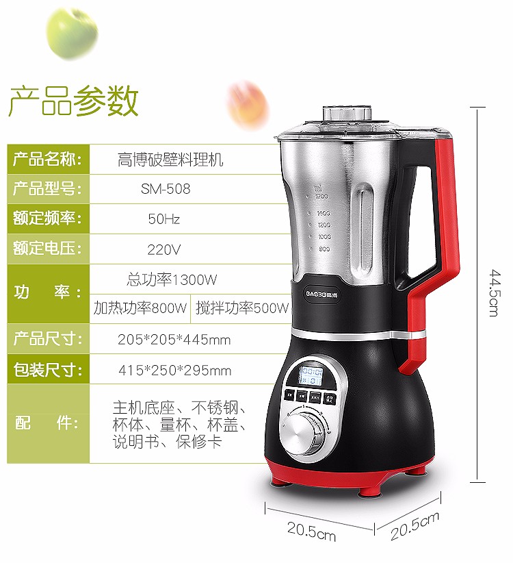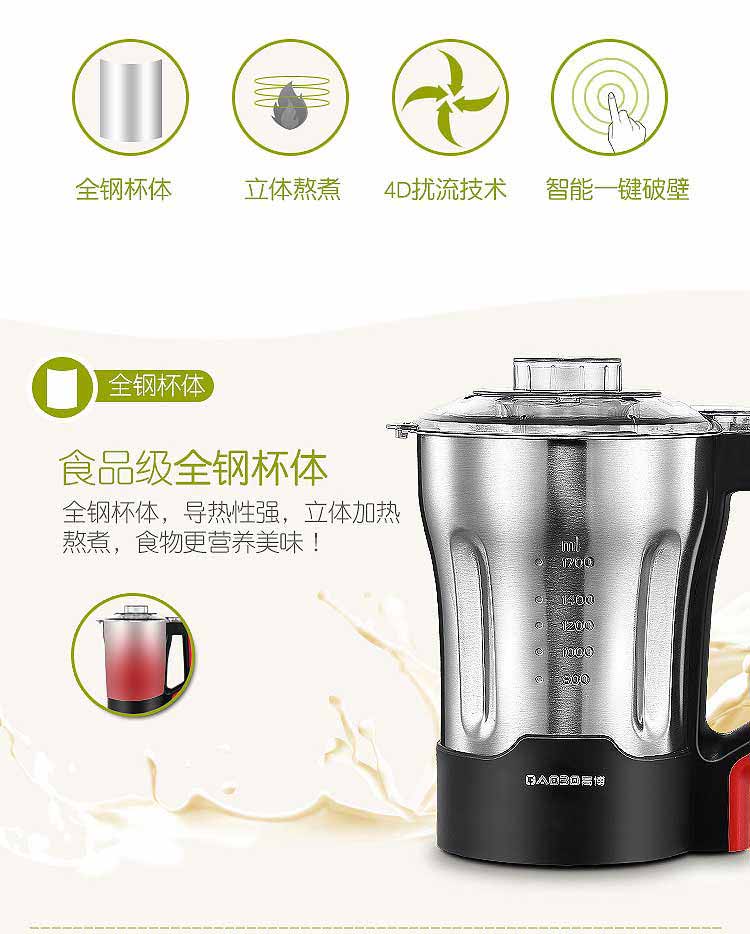 【高博 sm-508破壁机加热家用全自动料理机豆浆不锈钢】