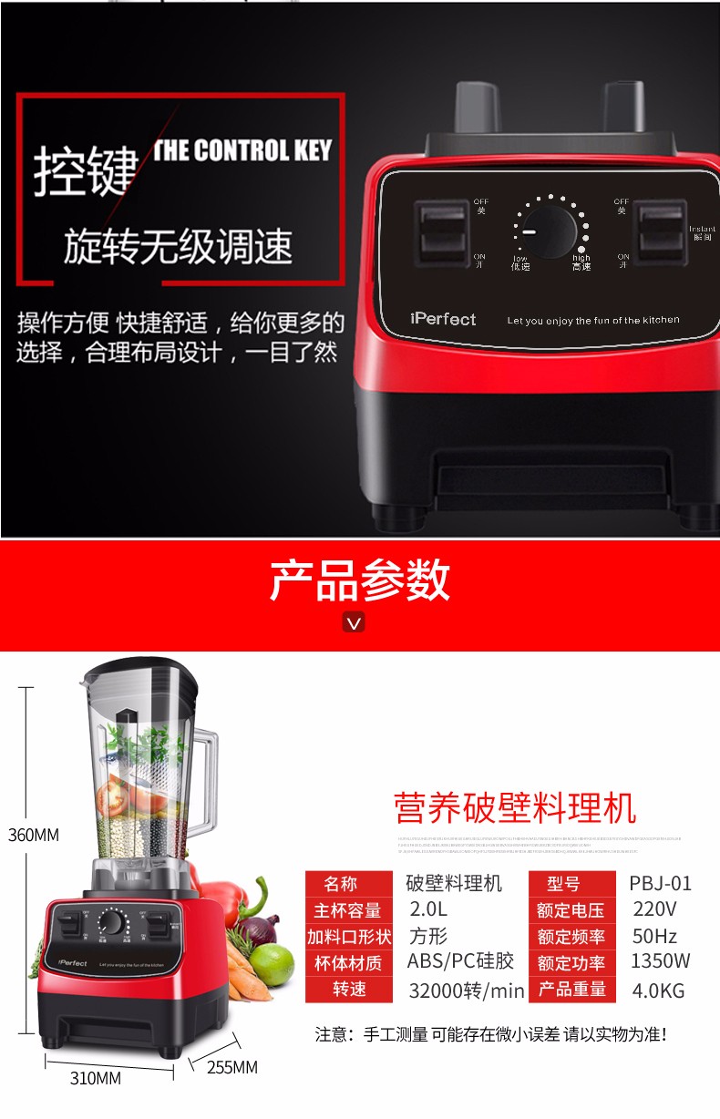 网站首页 【北爱(iPerfect)PBJ-01破壁料理机家用多功能果汁搅拌机绞肉机】 售价: ¥157+18美金币 已售: 5646 评价: 次评价 微信扫一扫轻松购买 数量: − + 收藏 保障: 随时退 过期退 极速退 真实评价