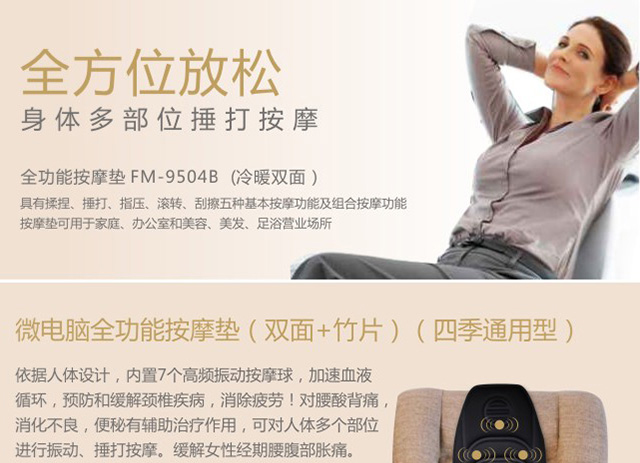 网站首页 【攀高 全功能按摩座垫(双面)FM-9504B1】 售价: ¥399+72美金币 已售: 5645 评价: 次评价 微信扫一扫轻松购买 数量: − + 收藏 保障: 随时退 过期退 极速退 真实评价
