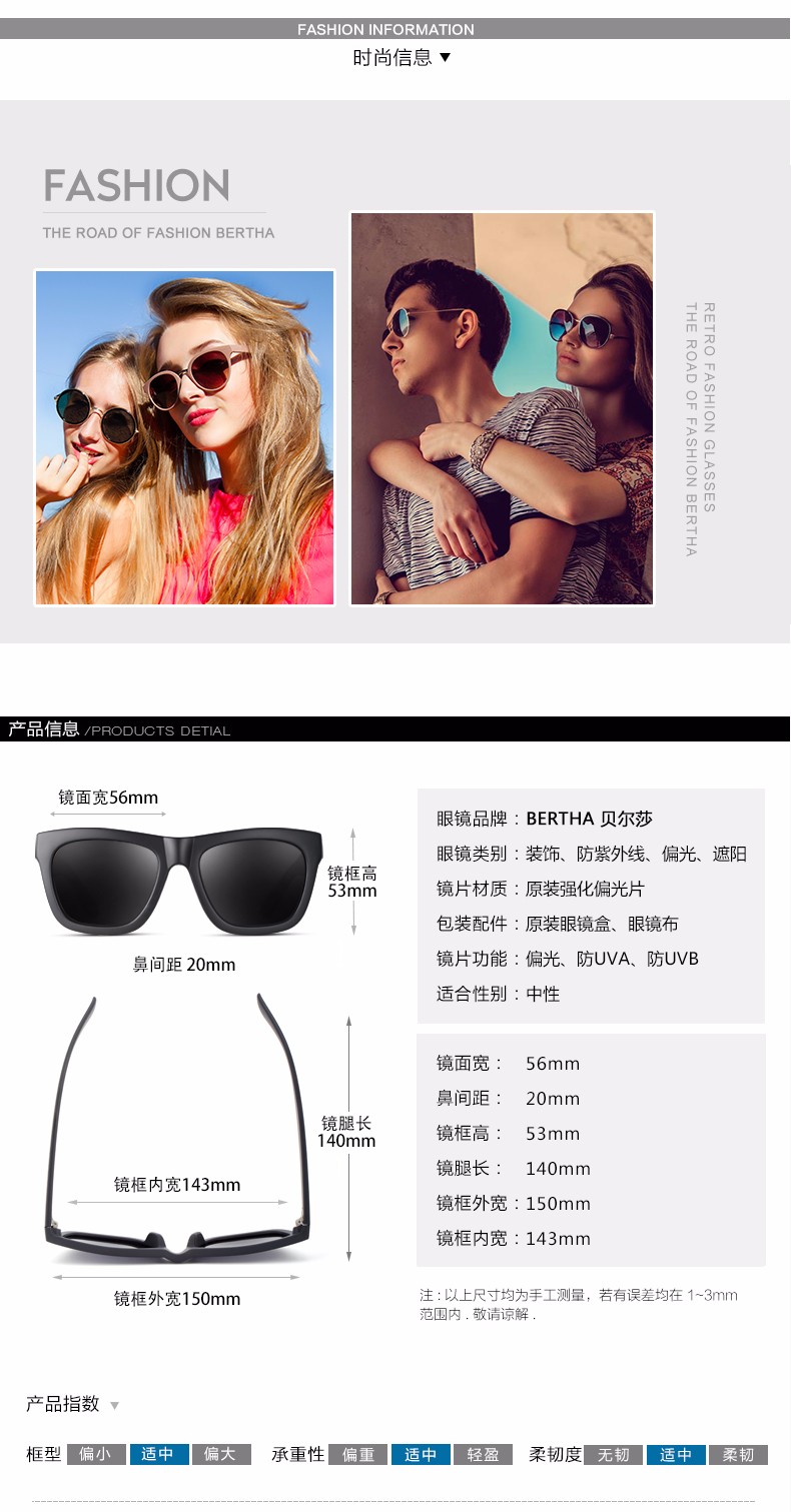 网站首页 【Bertha贝尔莎复古墨镜男女士偏光太阳镜 潮人超黑明星款大框时尚眼镜】 售价: ¥90+30美金币 已售: 4613 评价: 次评价 微信扫一扫轻松购买 数量: − + 收藏 保障: 随时退 过期退 极速退 真实评价