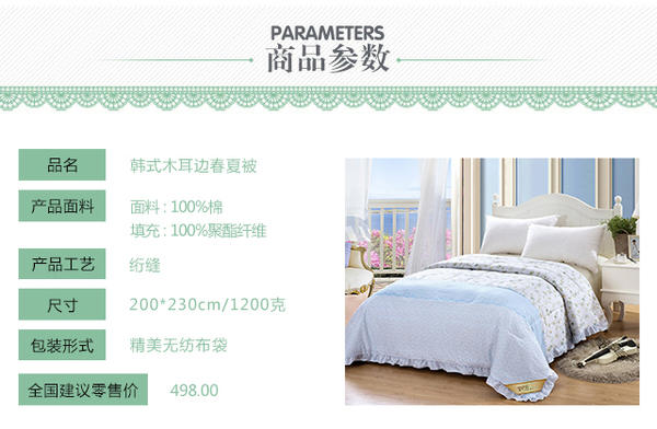 网站首页 【伊伊爱 夏凉被磨毛夏被 木耳边空调被可水洗韩版双人被子纤维】 售价: ¥158+36美金币 已售: 4532 评价: 次评价 微信扫一扫轻松购买 数量: − + 收藏 保障: 随时退 过期退 极速退 真实评价