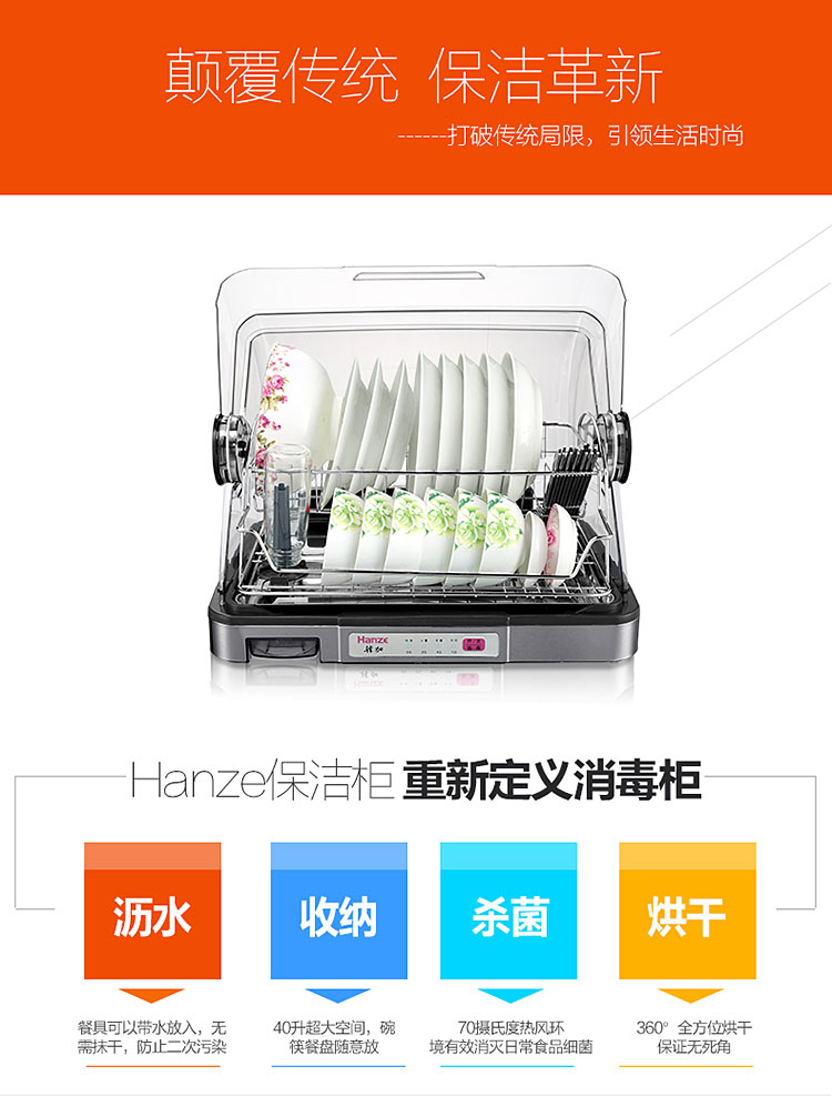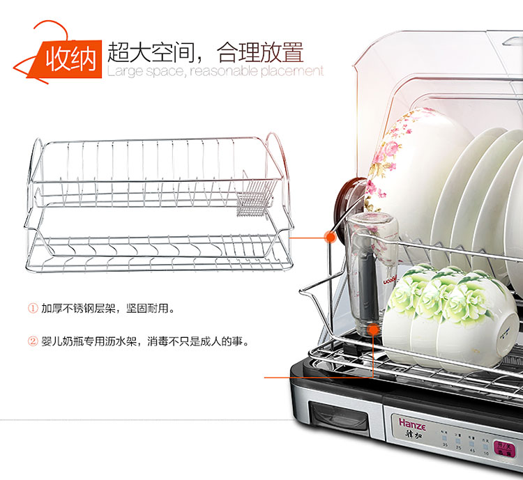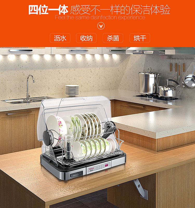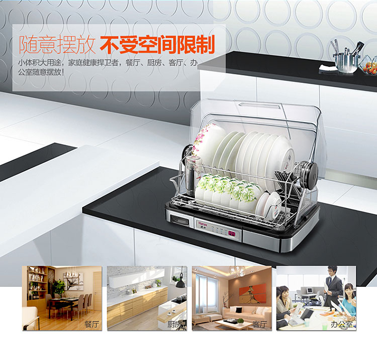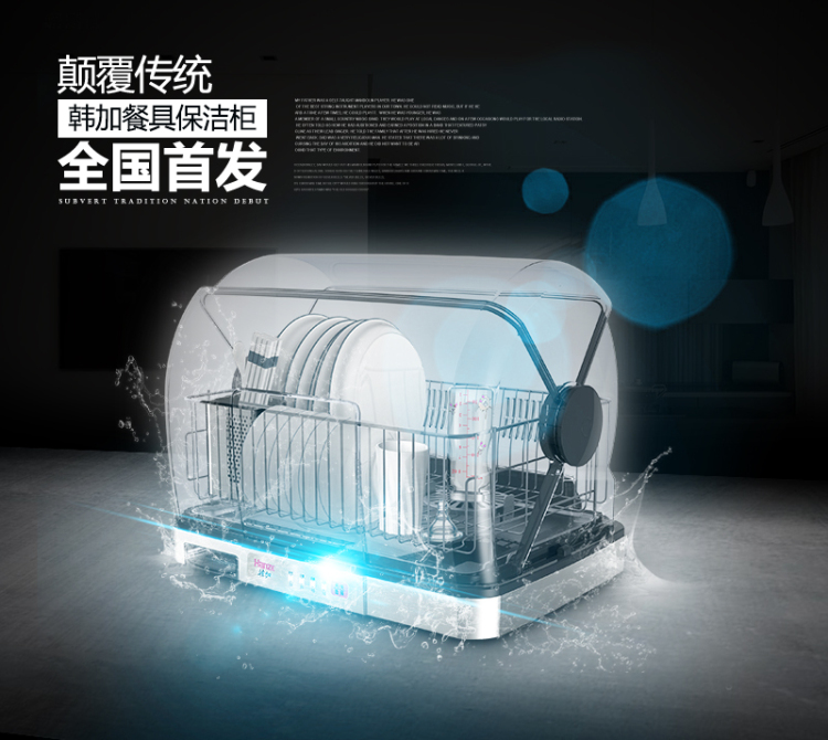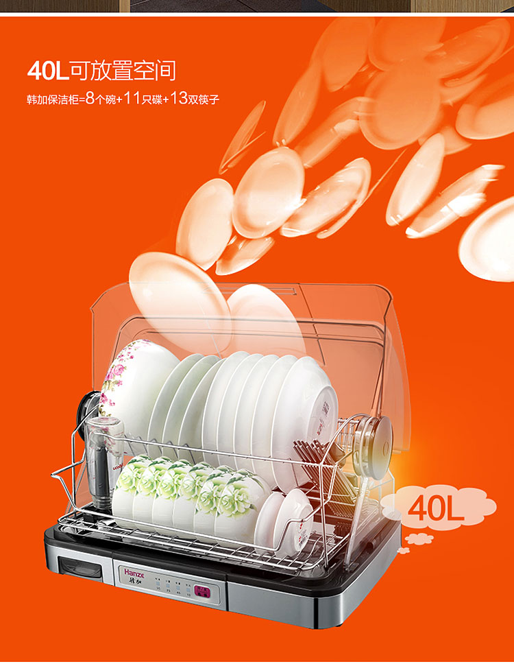 【韩加 家用迷你台式桌面消毒碗柜不锈钢保洁柜40L】