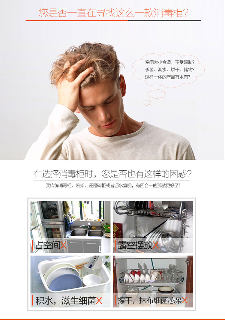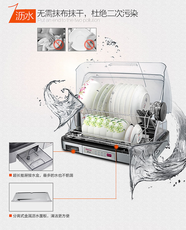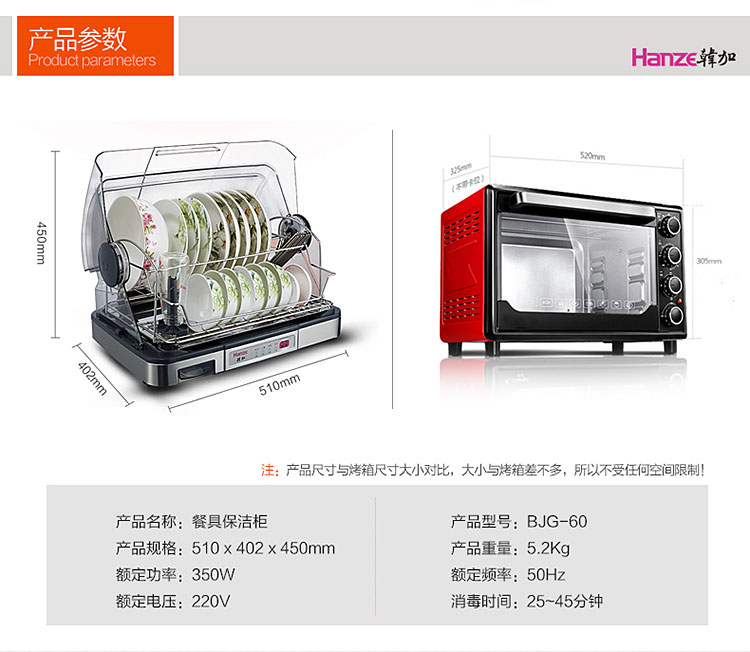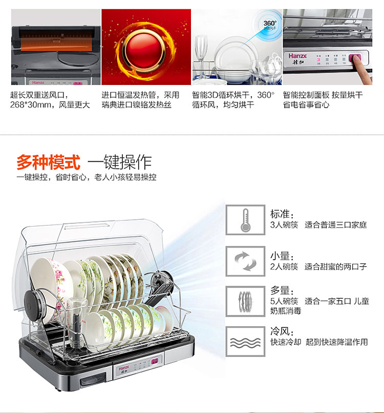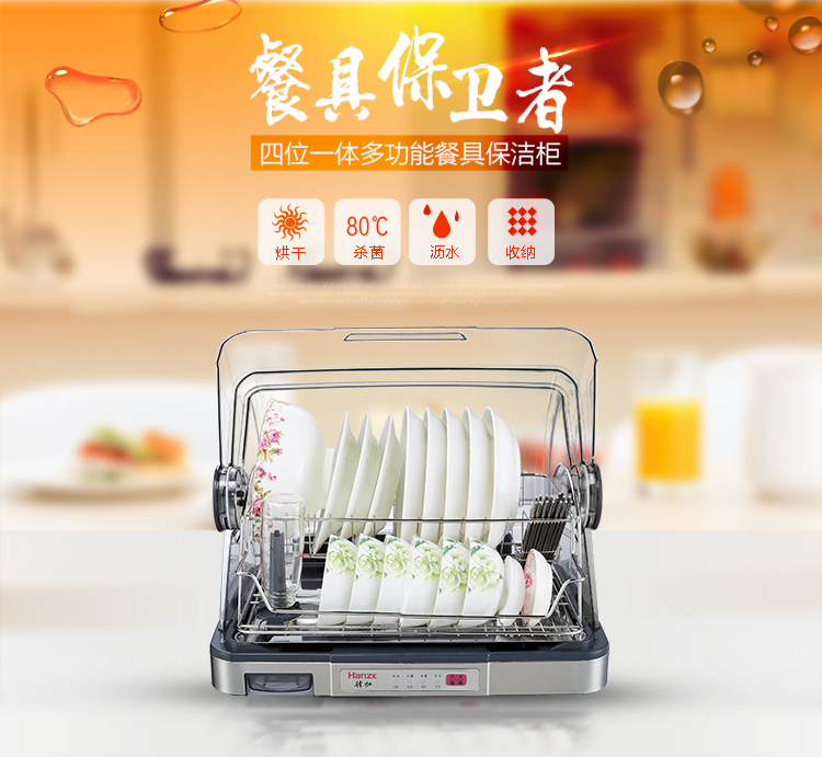 【韩加 家用迷你台式桌面消毒碗柜不锈钢保洁柜40L】
