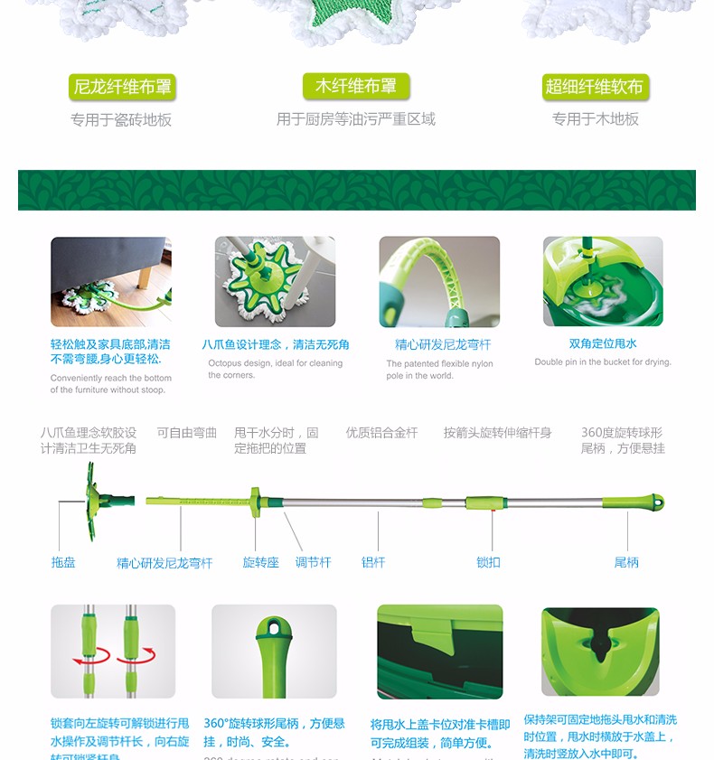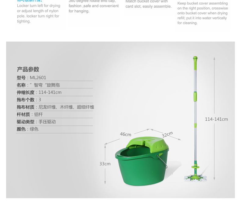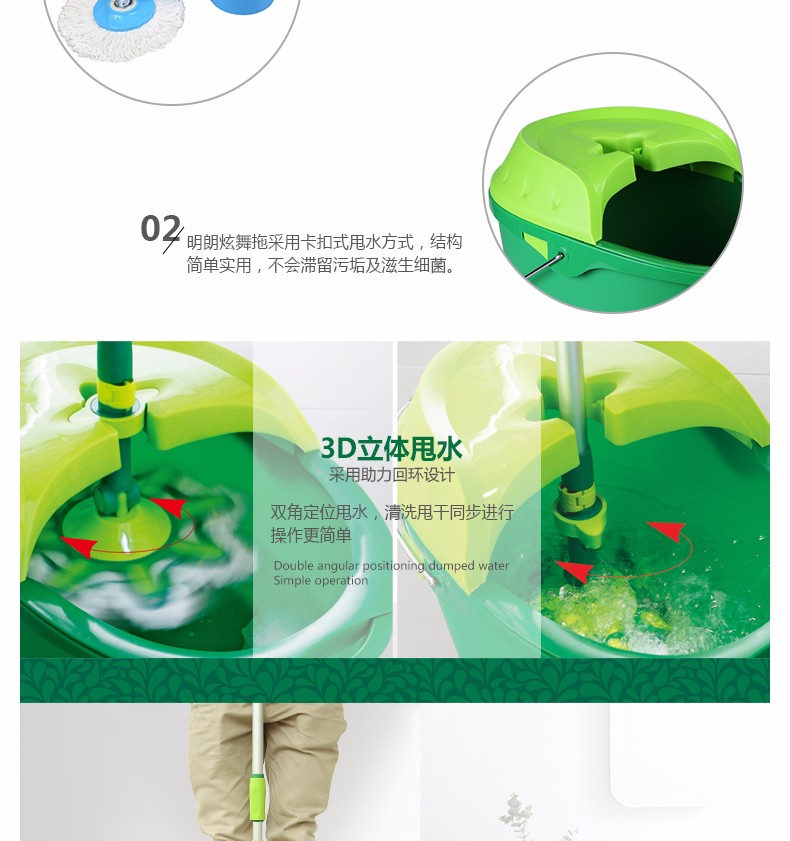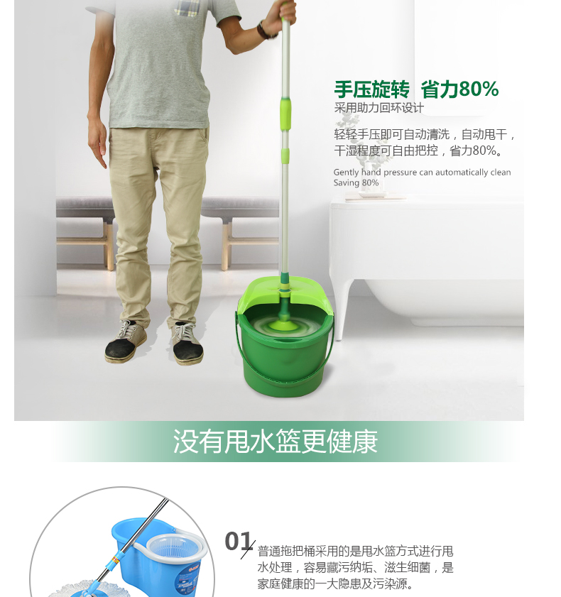 【minleo明朗手压双驱动旋转拖把桶自动甩干脱水家用旋转墩布桶加厚】