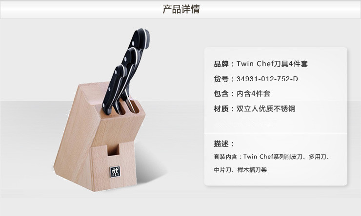 【德国双立人TWIN Chef 刀具4件套 不锈钢厨具多用刀蔬菜刀】