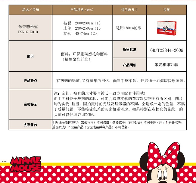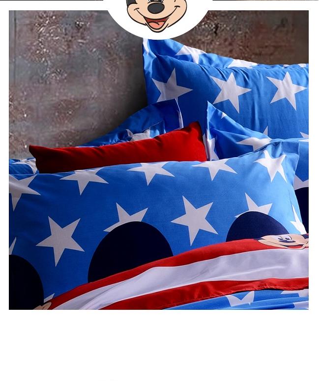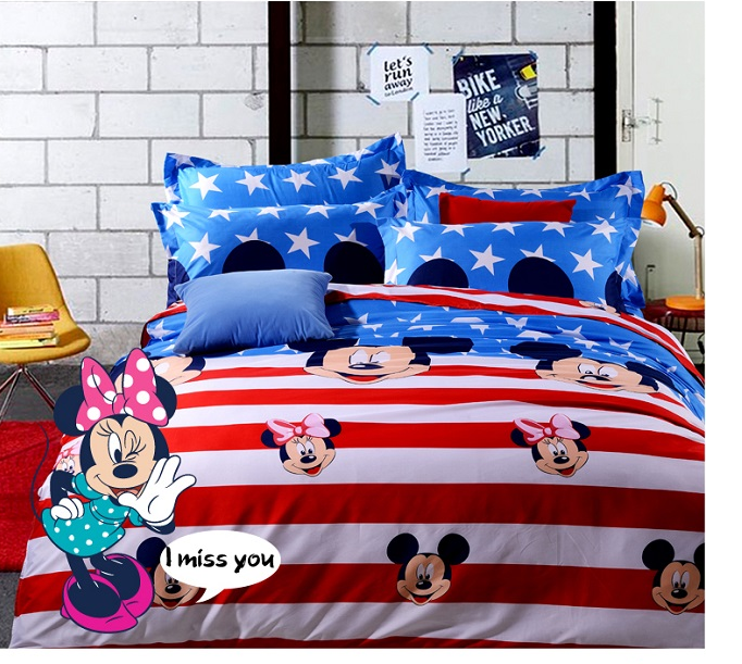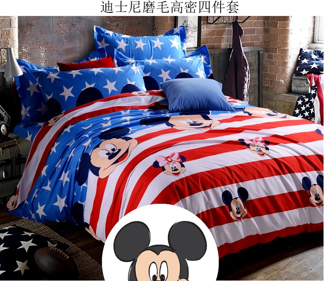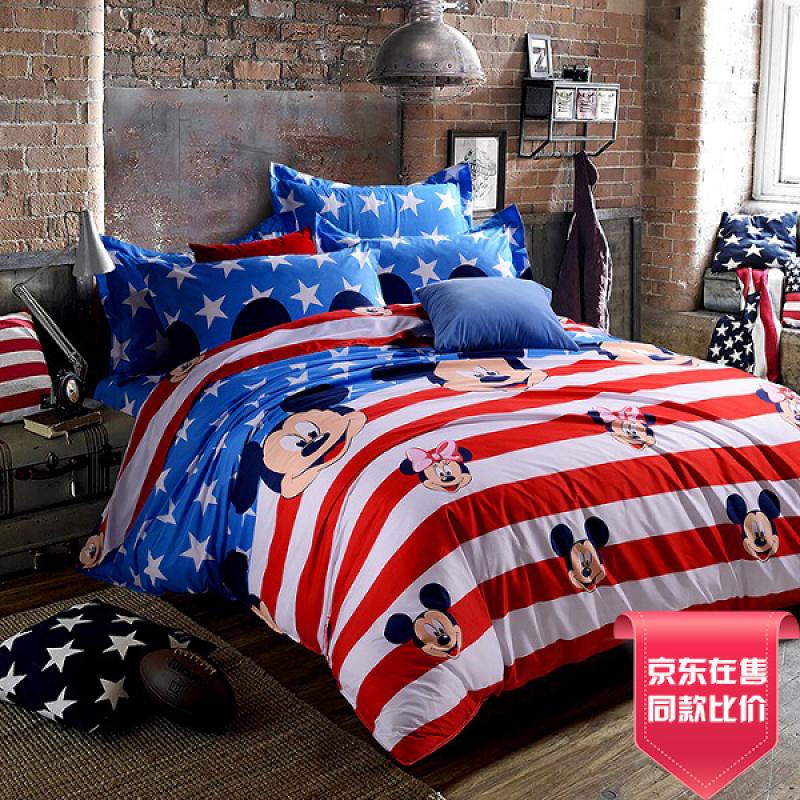 【迪士尼 卡通米奇恋米妮儿童床上套件环保重磅磨毛高密四件套200*230cm】