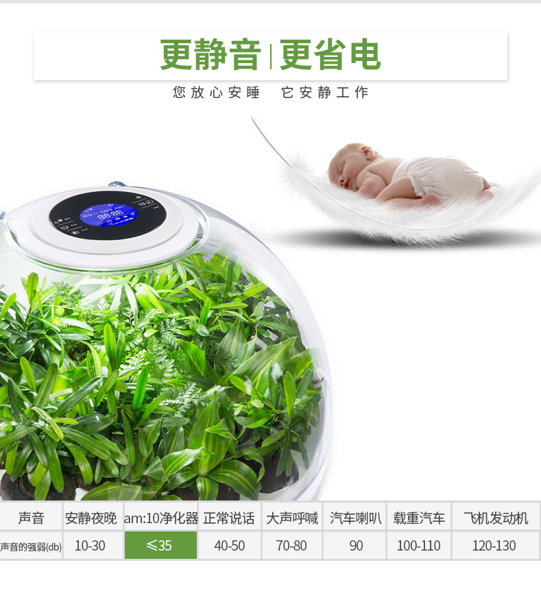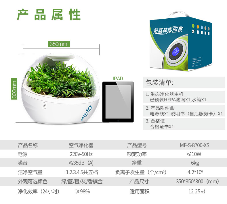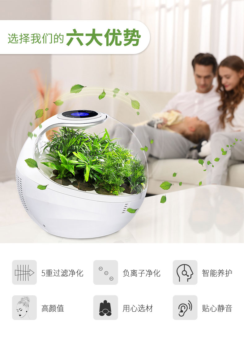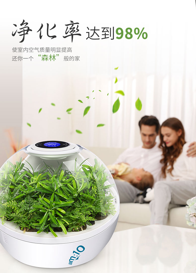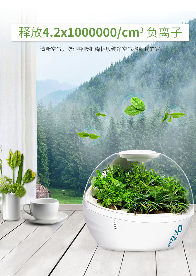 【am:10 微森林8700桌面负氧离子空气净化器家用除甲醛雾霾高释氧净化绿植氧吧带绿植 清新绿 馨园】