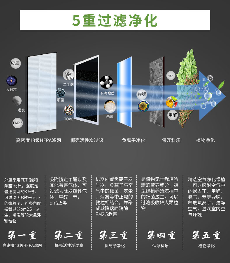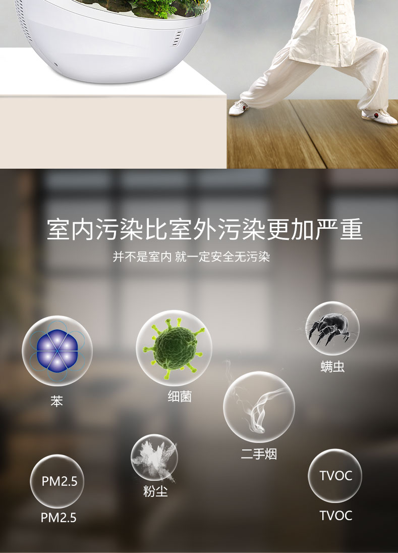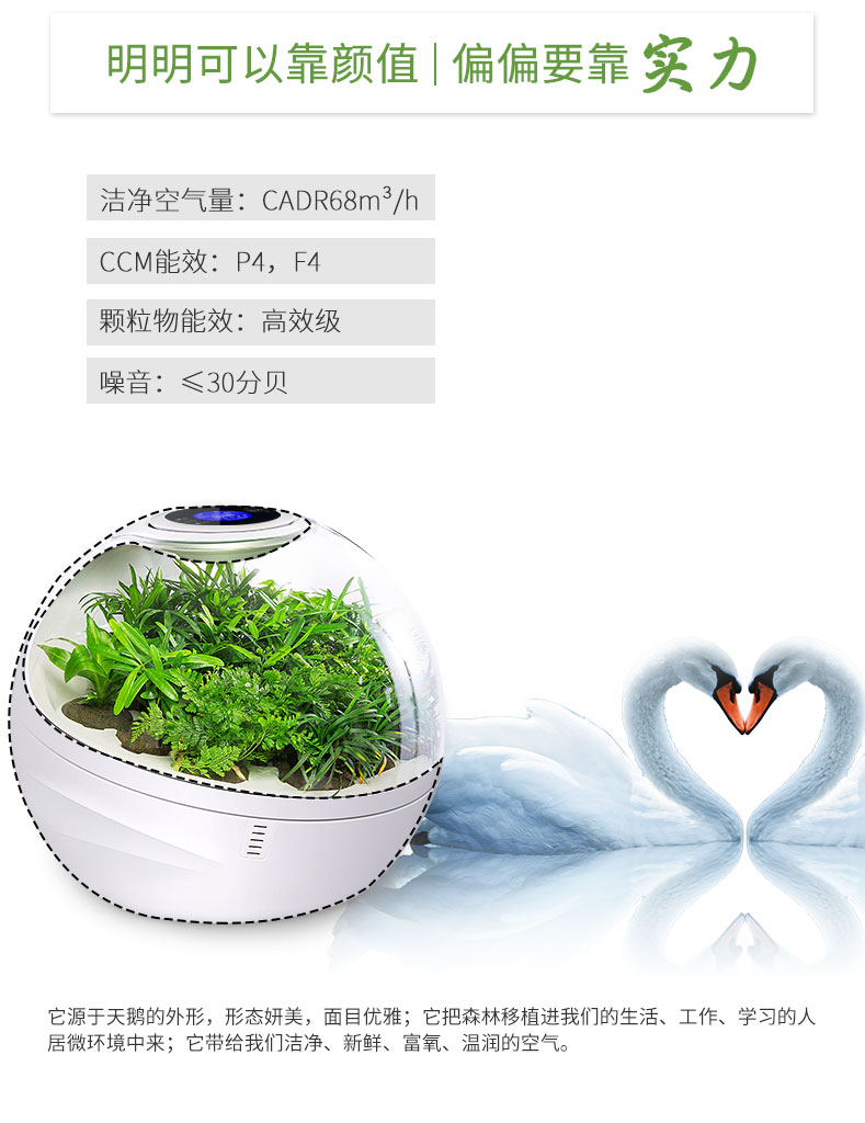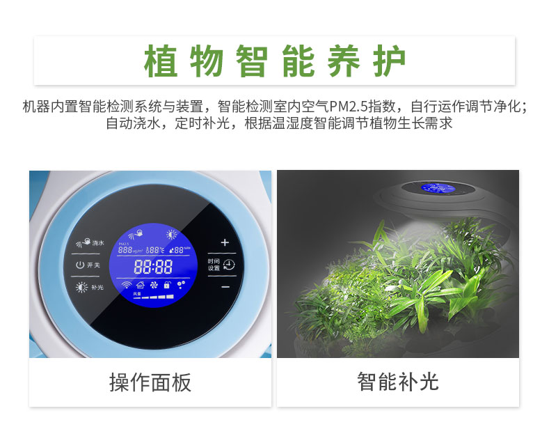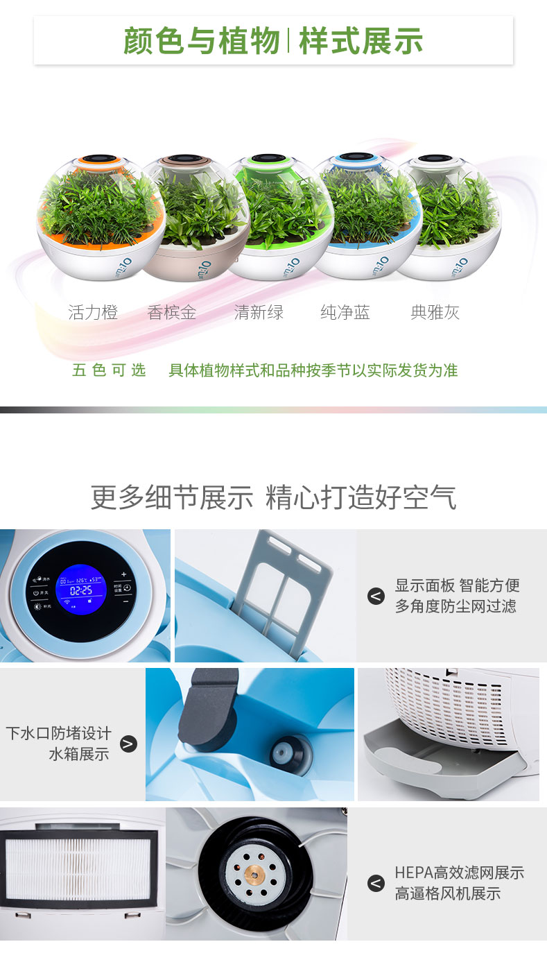 【am:10 微森林8700桌面负氧离子空气净化器家用除甲醛雾霾高释氧净化绿植氧吧带绿植 清新绿 馨园】